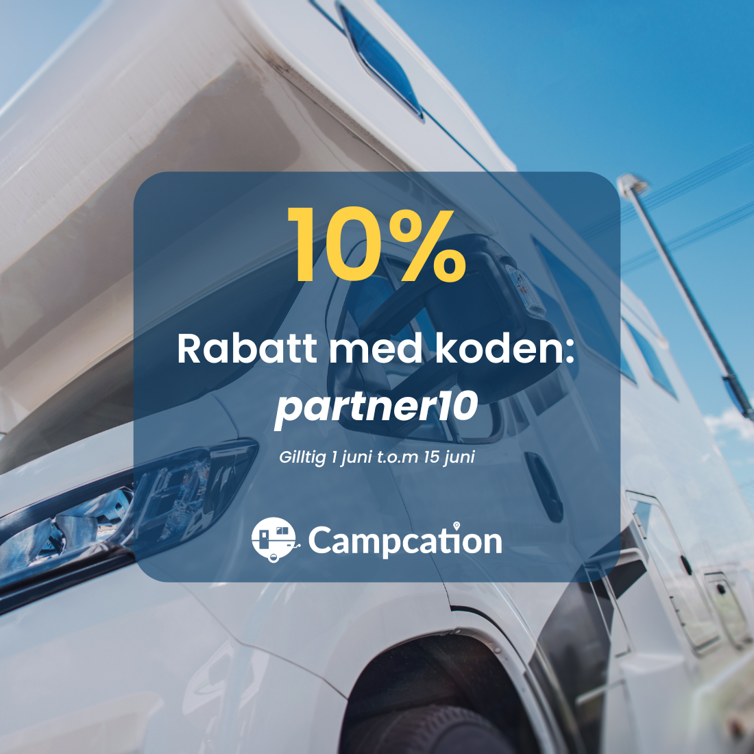 Ange rabattkod:partner10 Boka via:www.campcation.com Eller i Campcation-appen