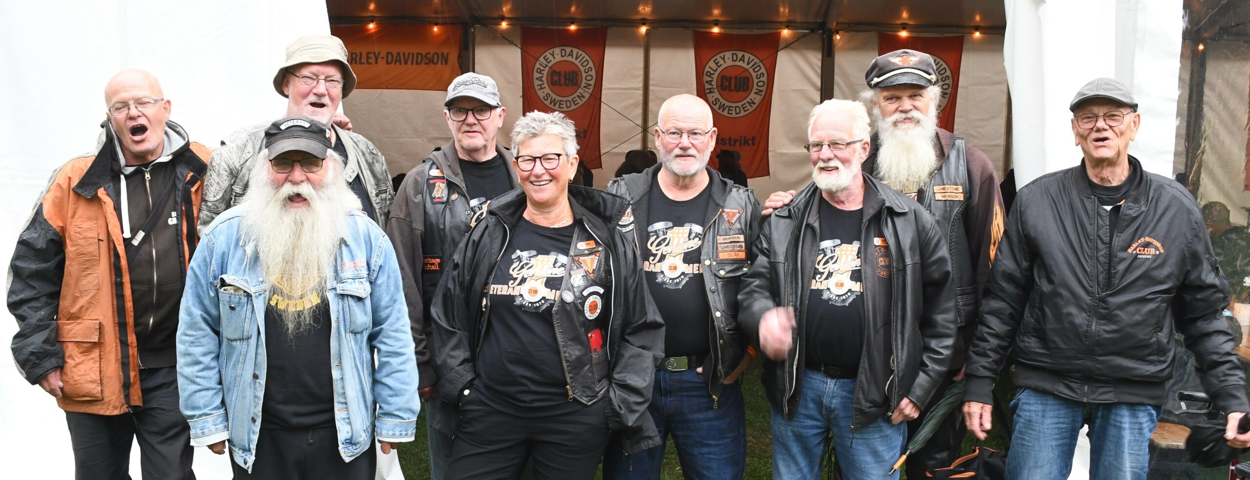 Vid Internationella Träffen brukar även ”äldre veteraner” ha en egen liten samling förutom klubbens hyllning till årets nya. Det här är veterangänget vid IT i Norrtälje 2025. Leif Persson brukar samla