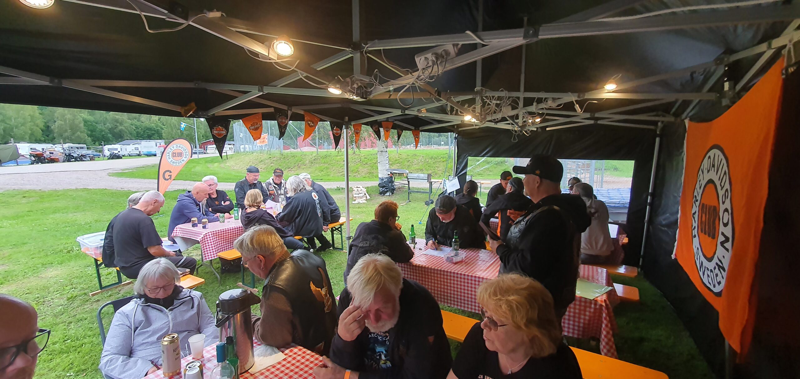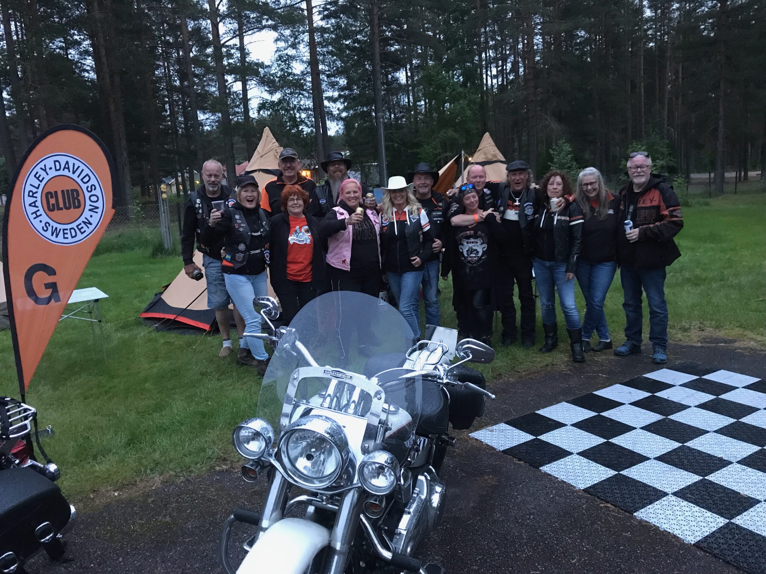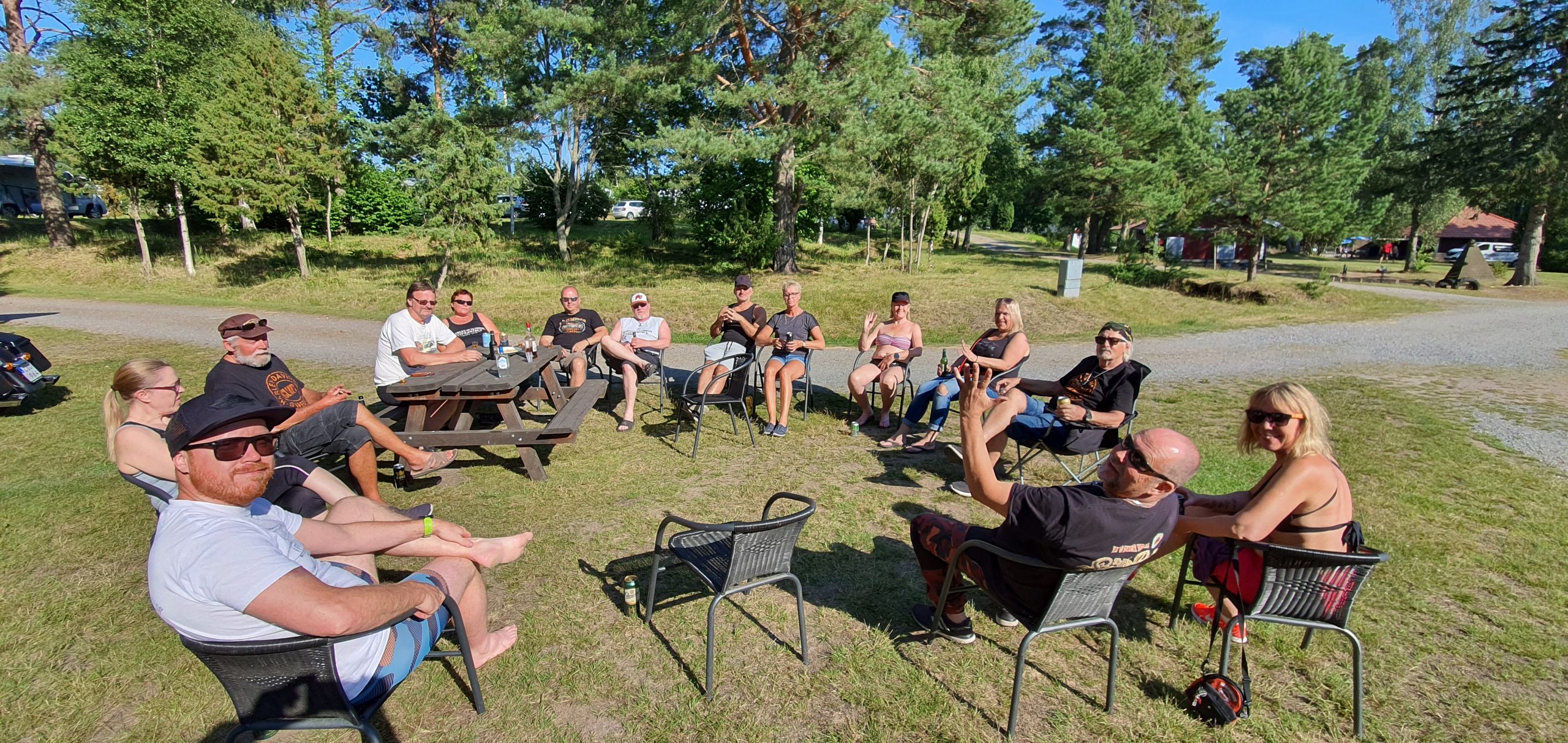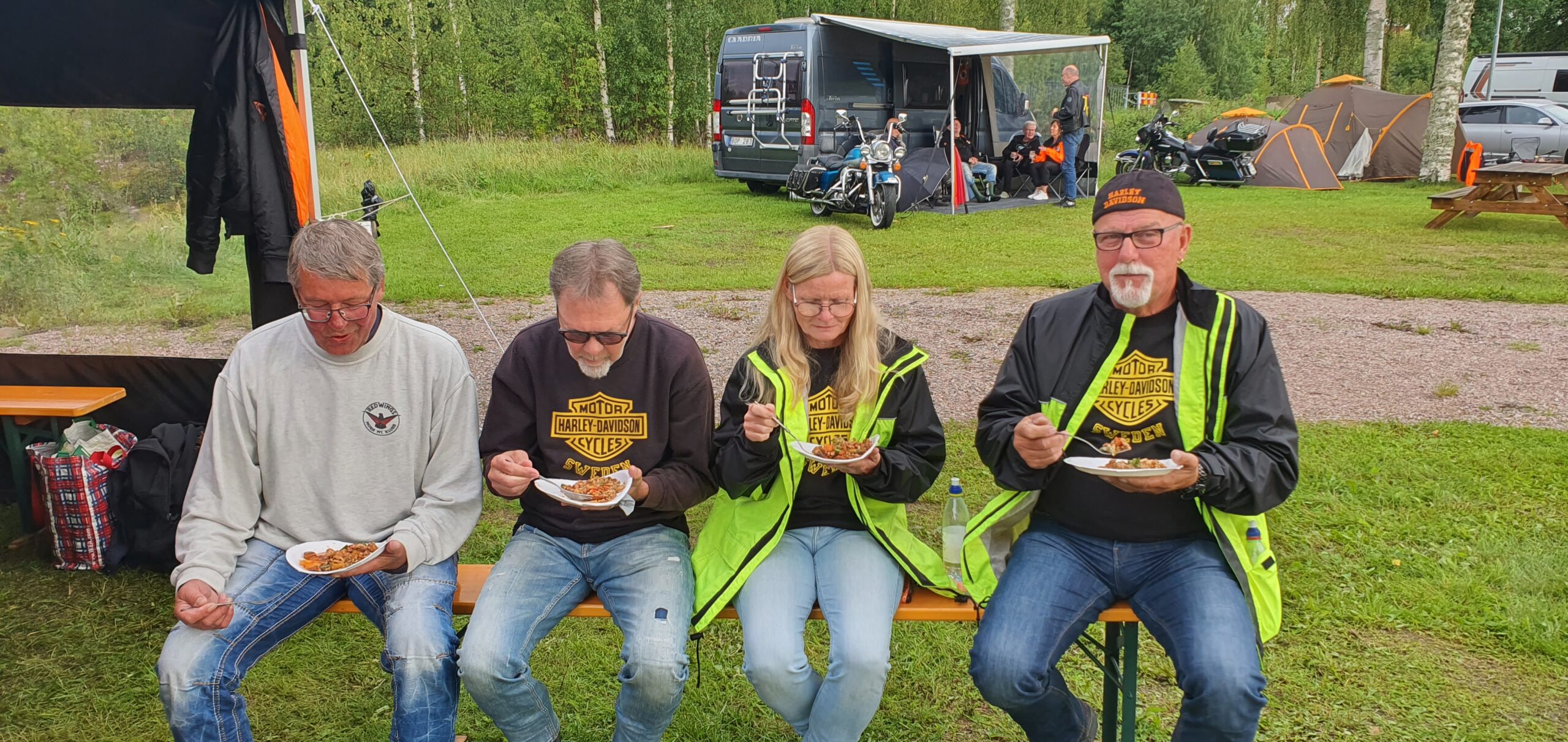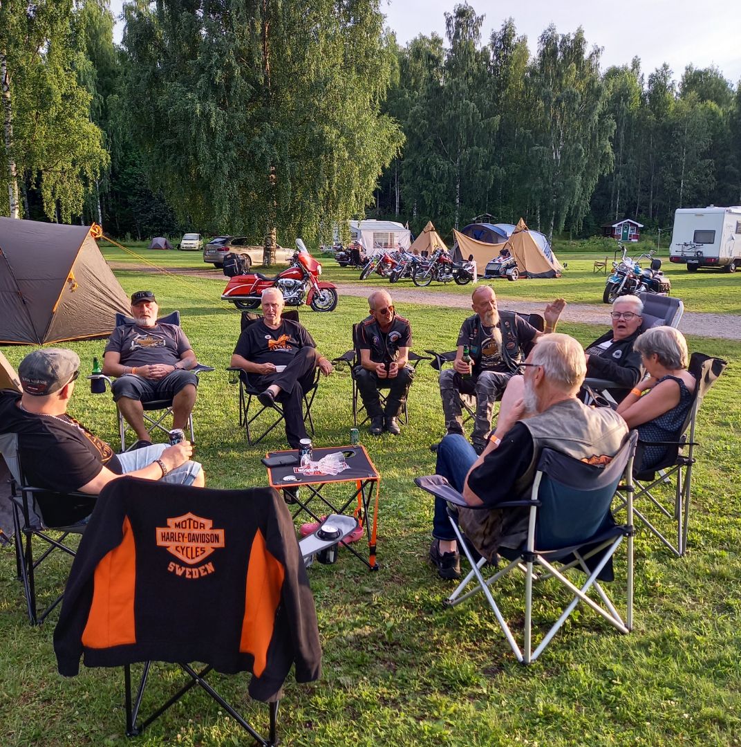 26 st bikers som trotsade väderprognoserna och träffades på Alfta camping