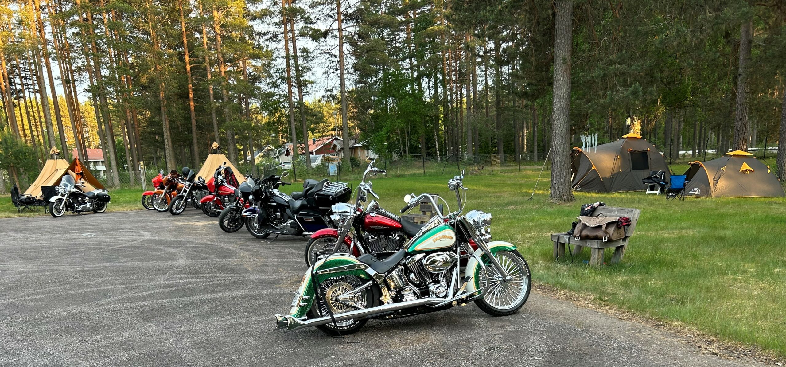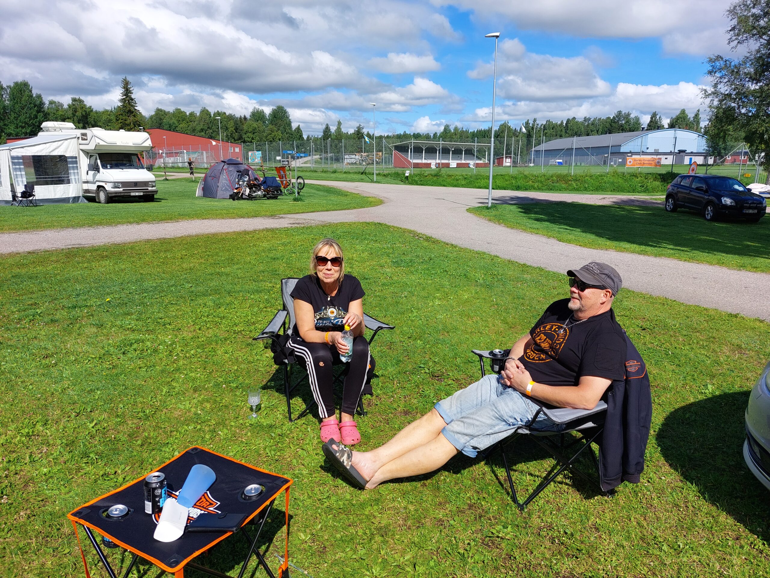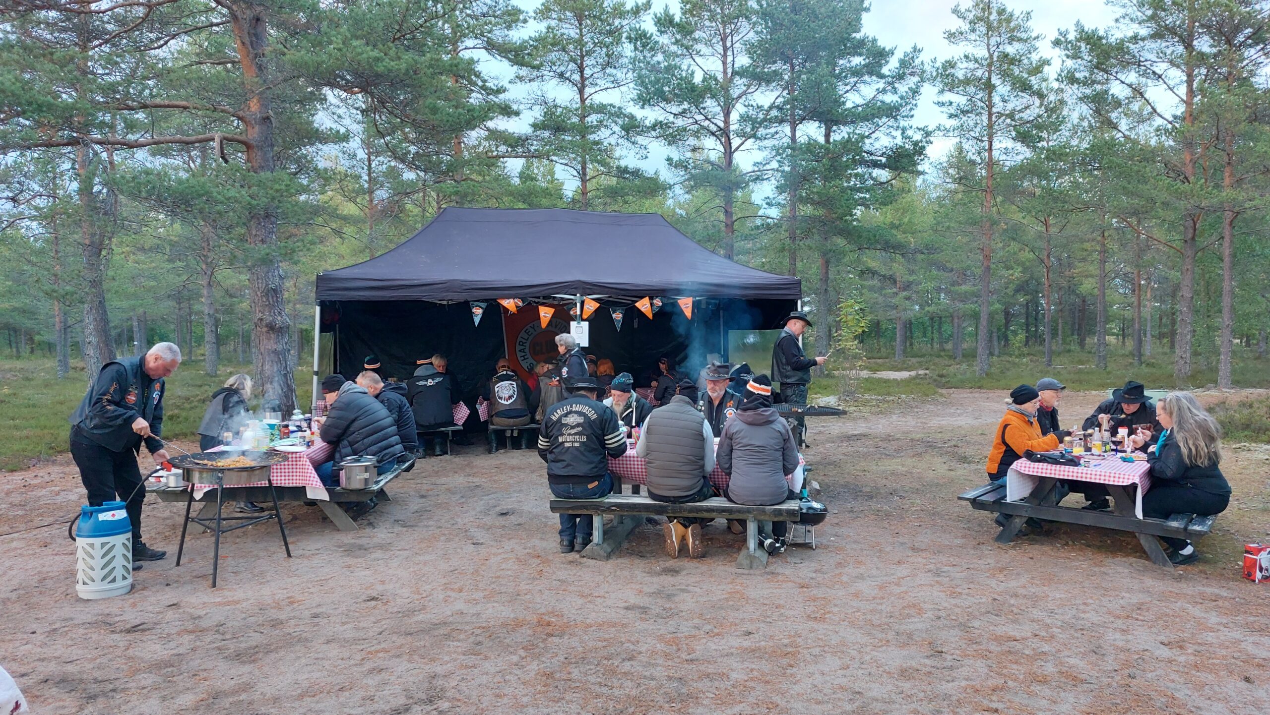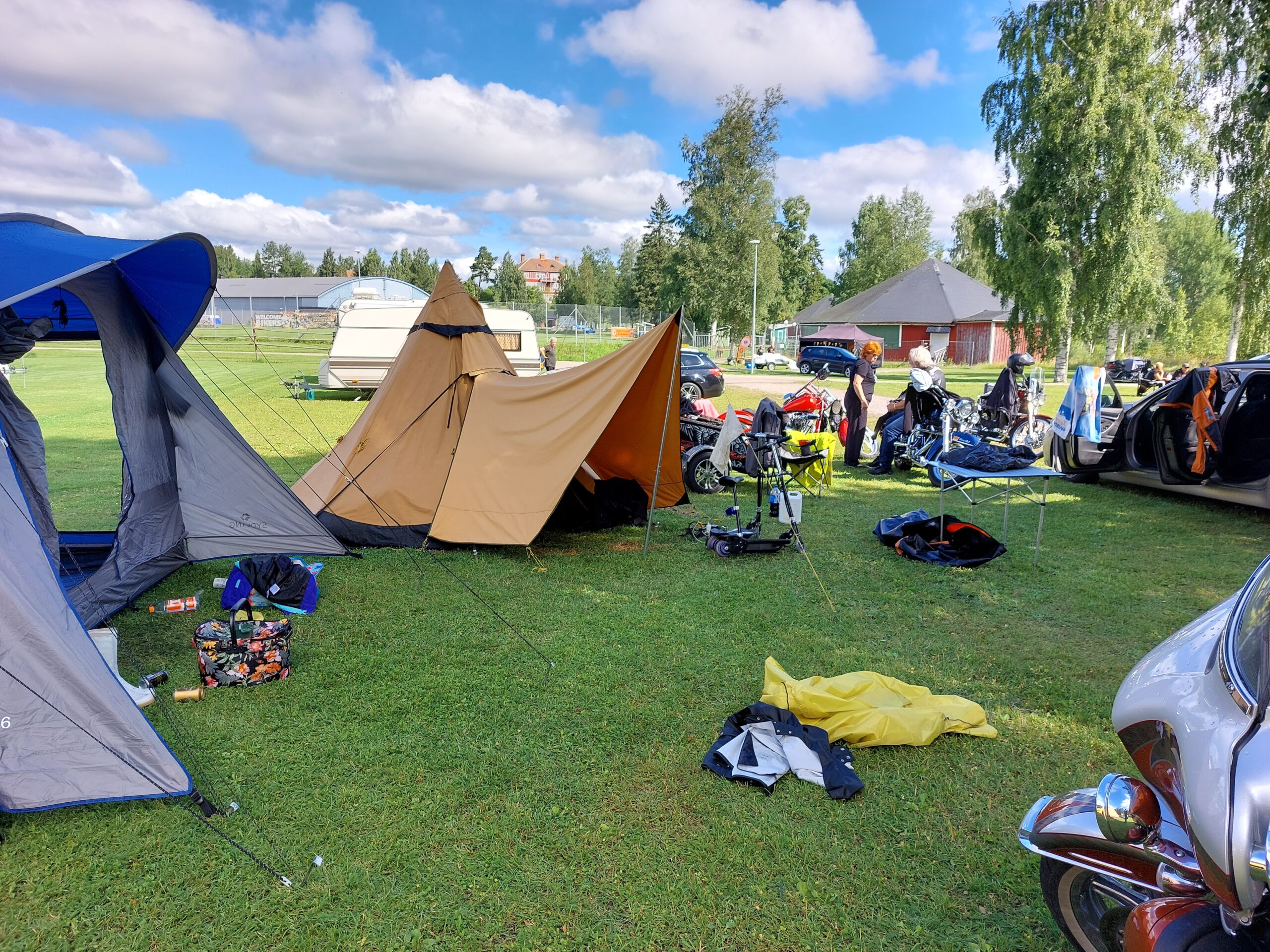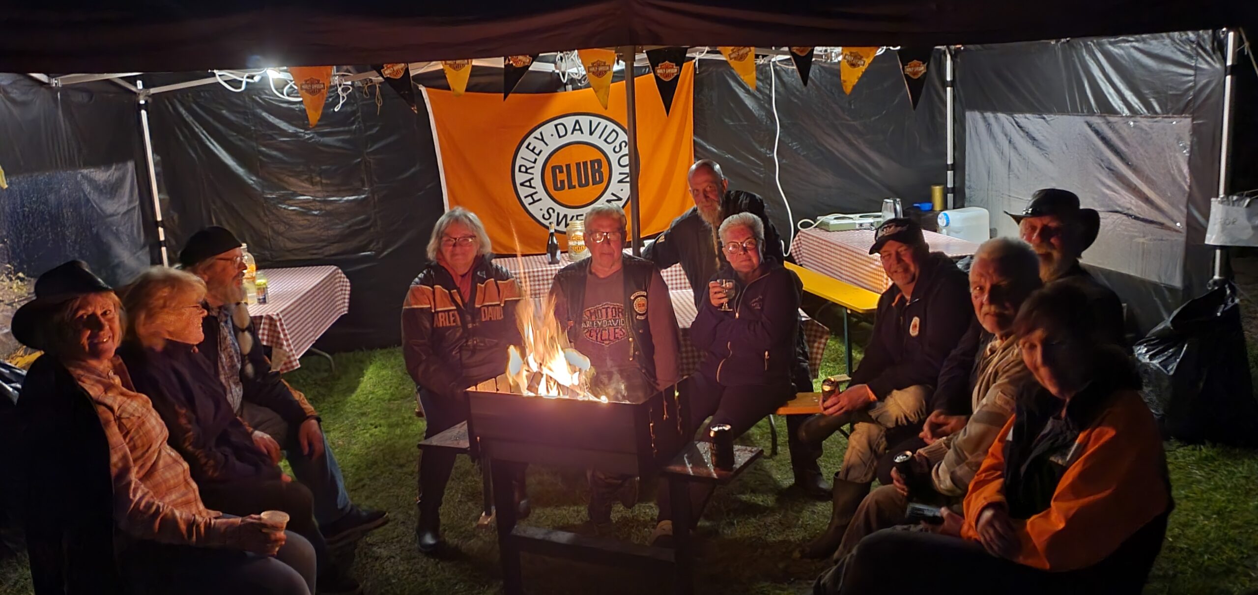 26 st bikers som trotsade väderprognoserna och träffades på Alfta camping