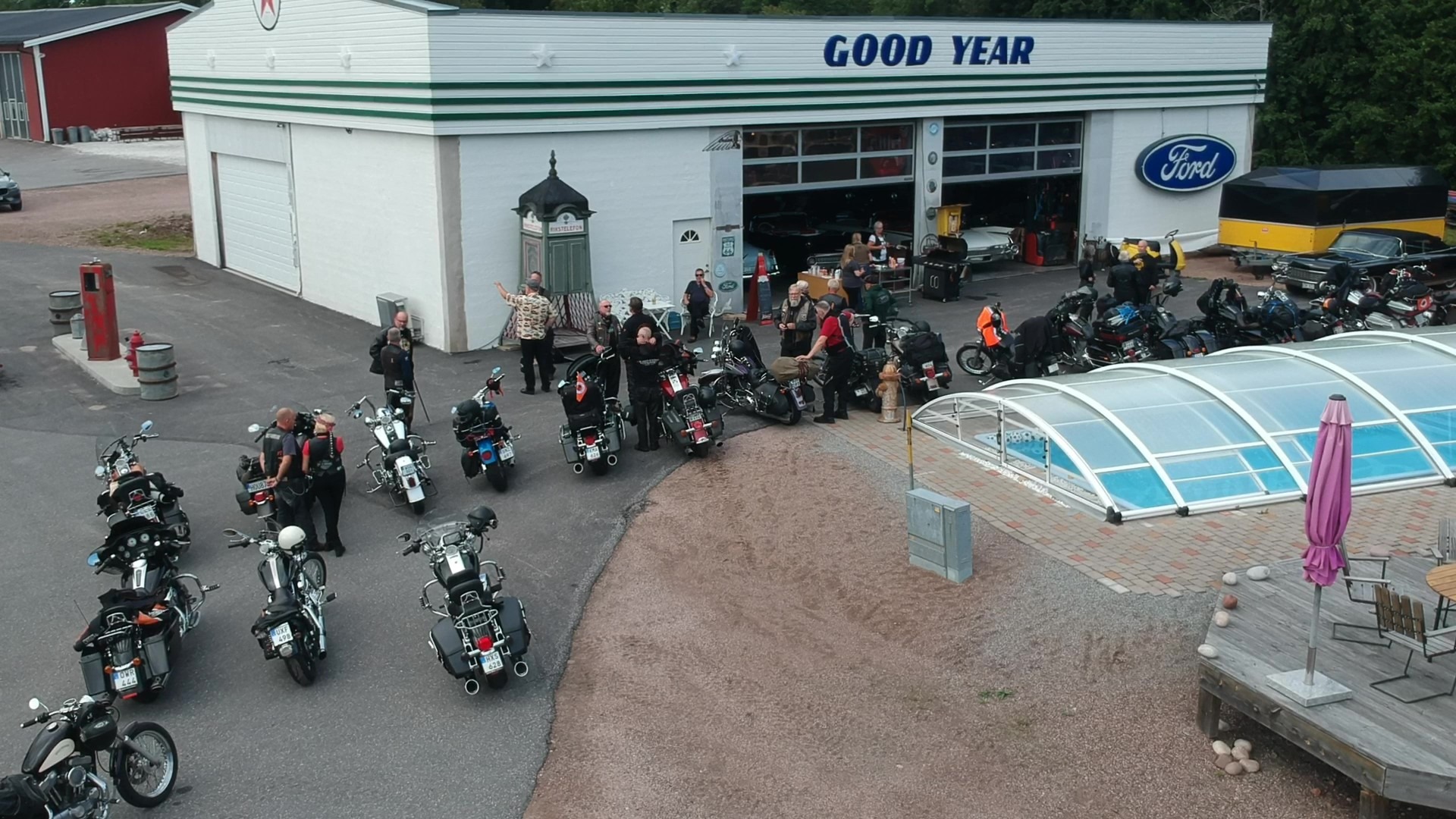 Starten gick som planerat från Igge Camping på fredagsmorgonen klockan nio. Vi var åtta personer som startade i Iggesund för att köra gamla E4:an via Mårdängssjön, där ett gäng hakade på och vidare ned till Dragon Gate för lunch. Efter lunch åkte vi vidare till Grådö och stannade vid Elving Långdahls privata bil museum. Där beundrade vi alla fina bilar och inredningsdetaljer samt åt middag som de hade varit så trevliga att ordna åt oss.