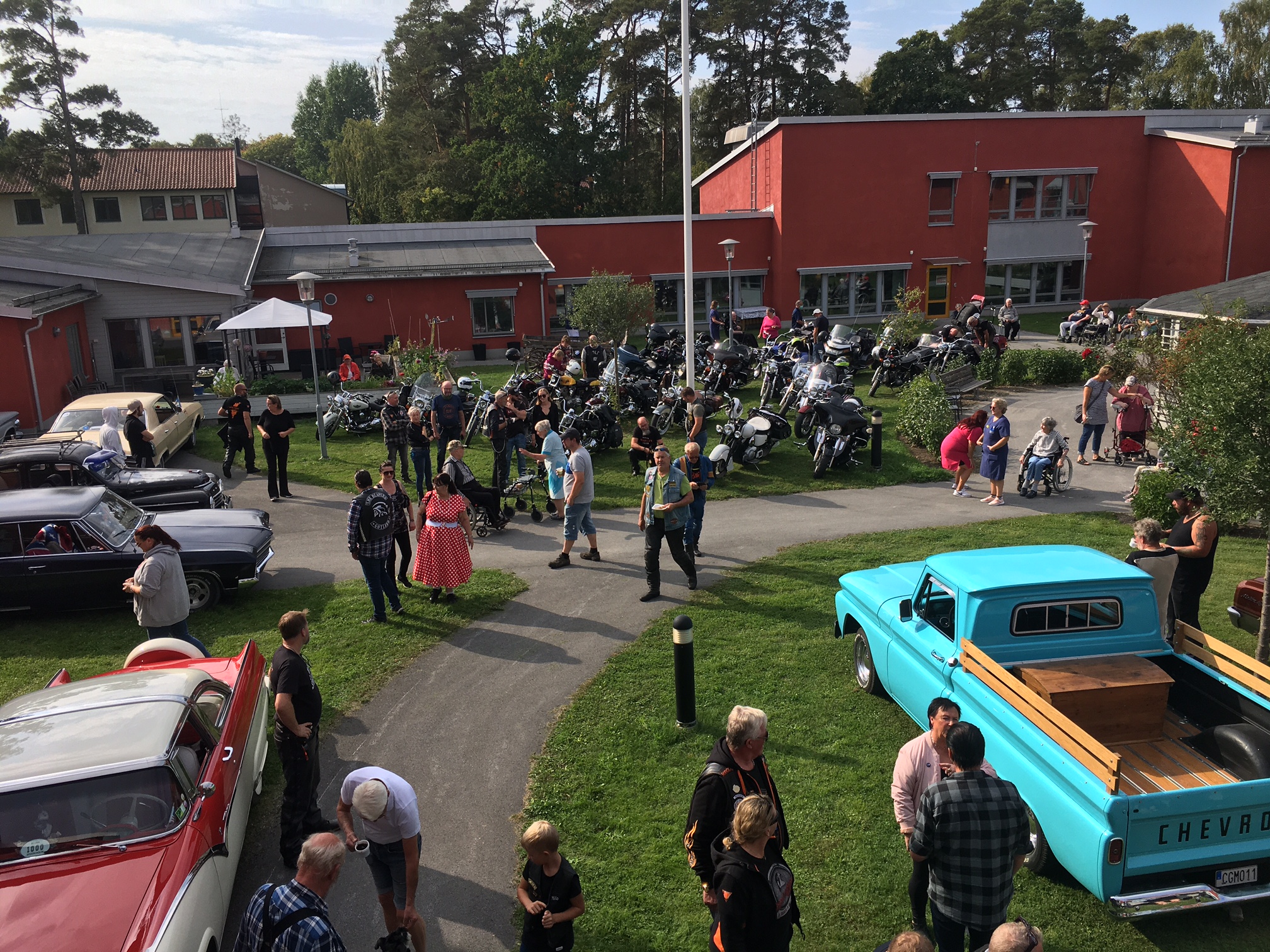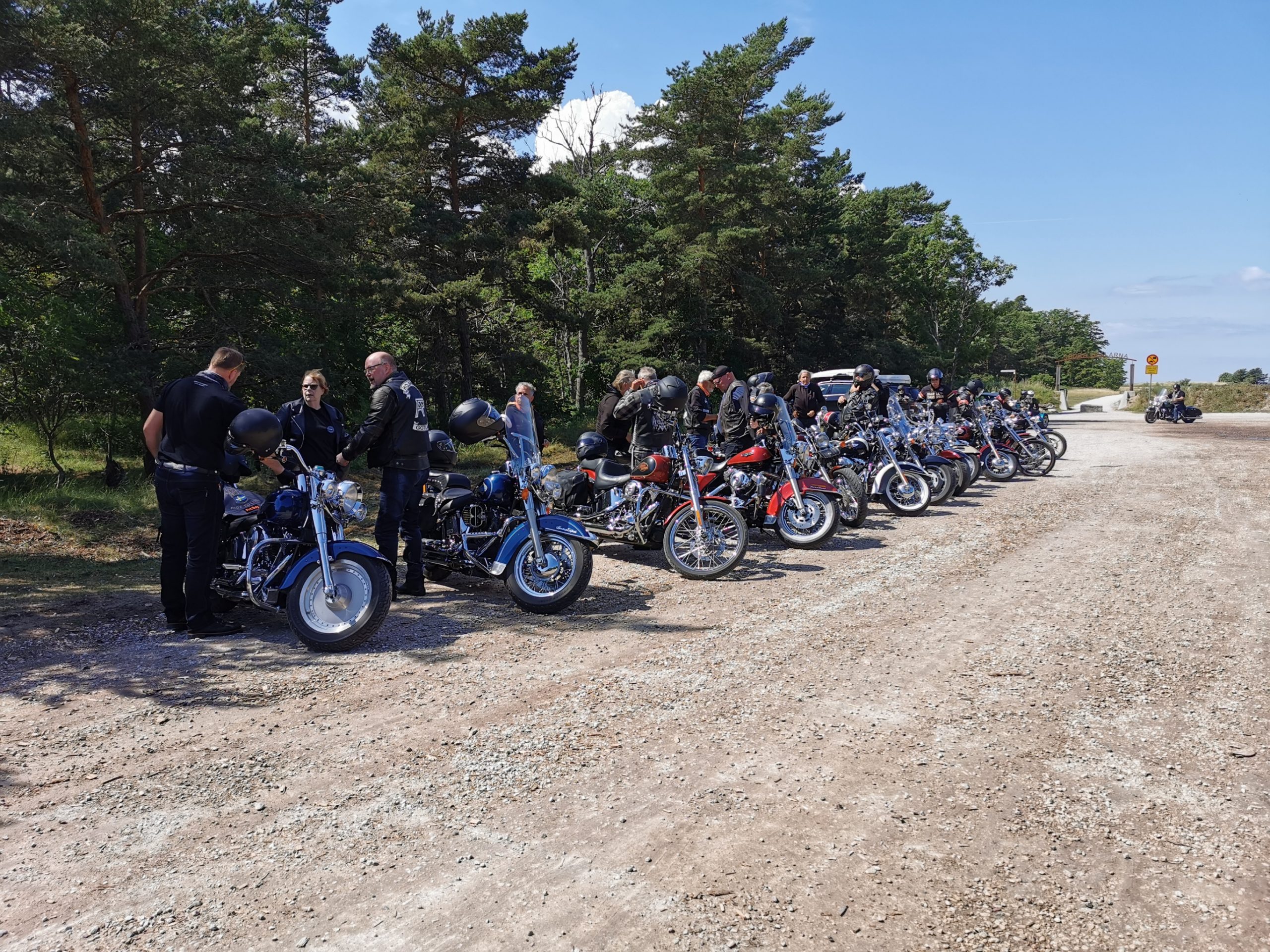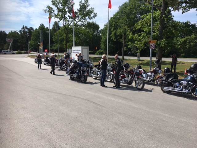 Hojtur som gick från Visby via Västerhejde, Stenkumla, Träkumla, Buttle, Ala och fika hos Espegards i Ljugarn, sen vidare mot Roma äldreboende där andra motorfolk slöt upp för att visa gamlingarna lite sköna fordon.